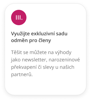 Pokud s námi cestujete poprvé nebo jen občas, čekají na vás speciální partnerské nabídky a odměny z balíčku CLASSIC. Cestujete-li pravidelně, alespoň 2× za 3 roky, při nákupu zájezdu získáte navíc balíček CARE nebo COMFORT se slevami na zájezdy a doplňkové služby. Konkrétní balíček závisí na ceně zájezdu za dospělou osobu. Do programu se přidáte snadno ve své klientské sekci. Pokud ještě účet nemáte, stačí krátká registrace.